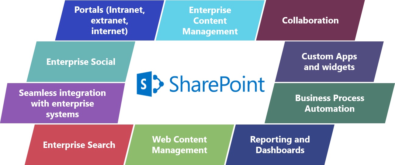 End-to-End development of SharePoint includes configuring policies, access management and features, mapping drives and folders, and setting up from scratch dictated by business requirements.